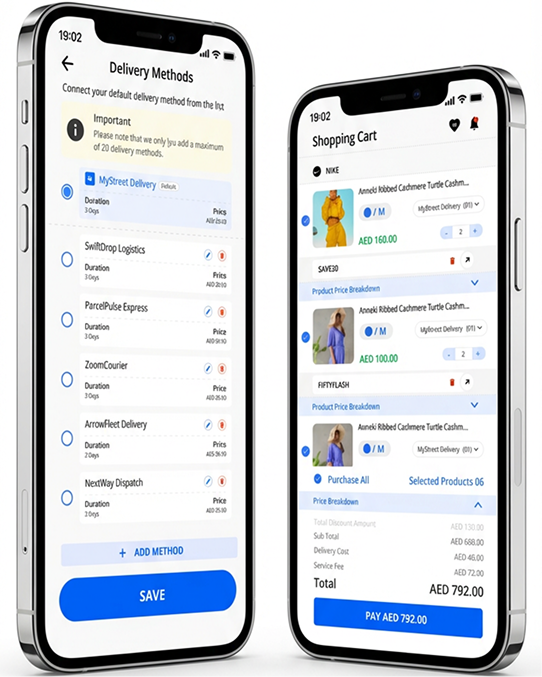 Ship it your way! From local to global, plus easy pickup times, merchants can mix and match delivery methods effortlessly giving customers the ultimate flexibility and a stress-free shopping experience.